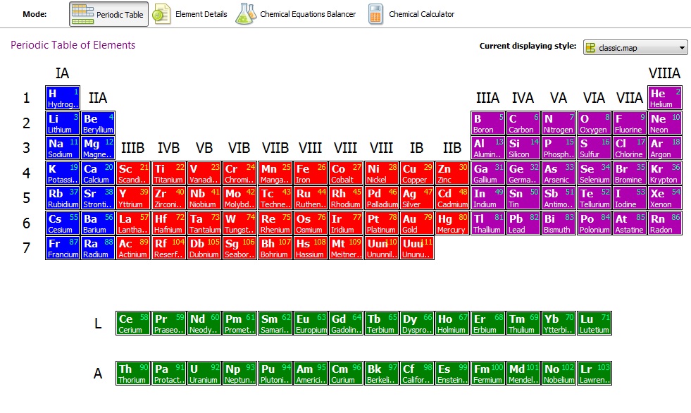 PL Table é uma tabela periódica multifuncional. São oferecidos mais de vinte dados diferentes sobre cada elemento químico e 890 isótopos dos 111 elementos, incluindo sua