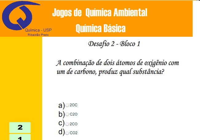 Software que apresenta questões de múltipla escolha relacionadas às teorias químicas e ao cotidiano.