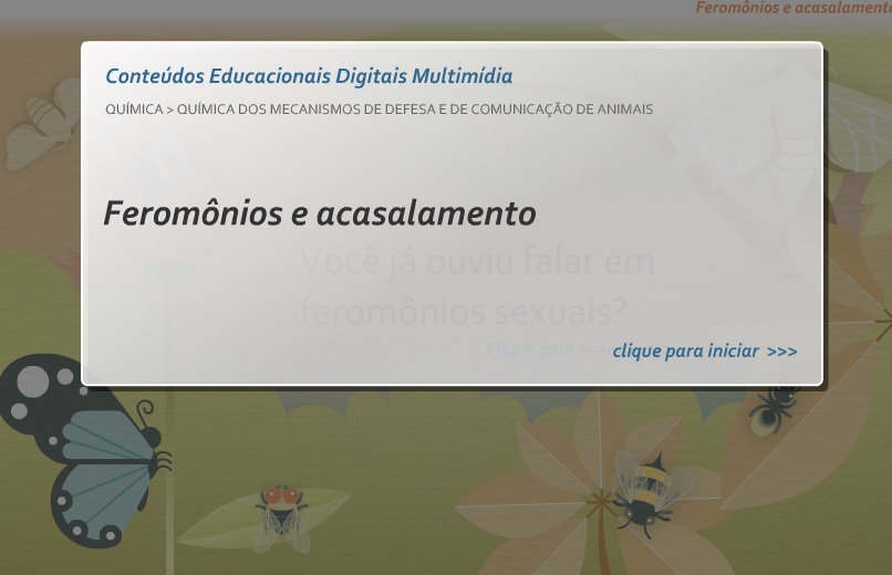 Animação sobre química dos mecanismos de defesa e de comunicação de animais, tratando mais especificamente o assunto feromônios e acasalamento.